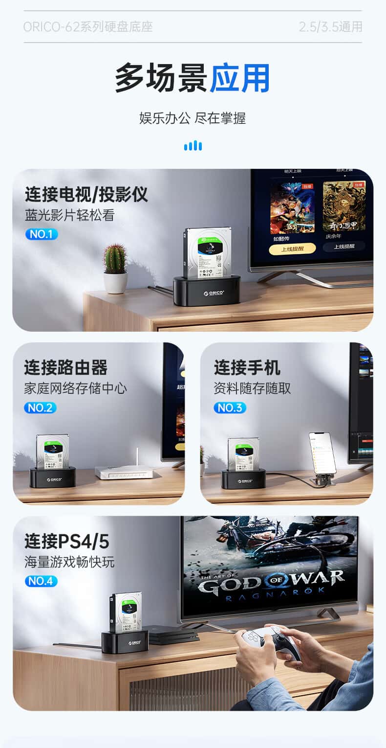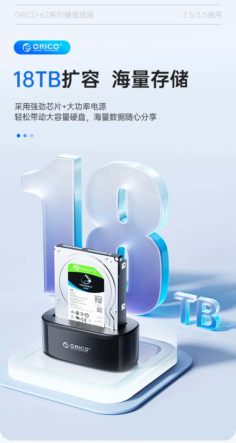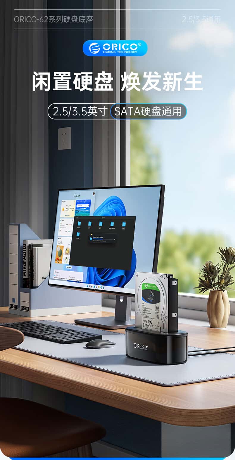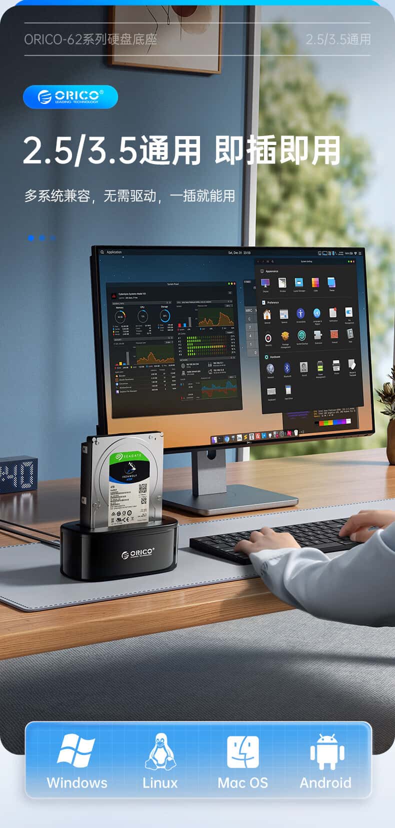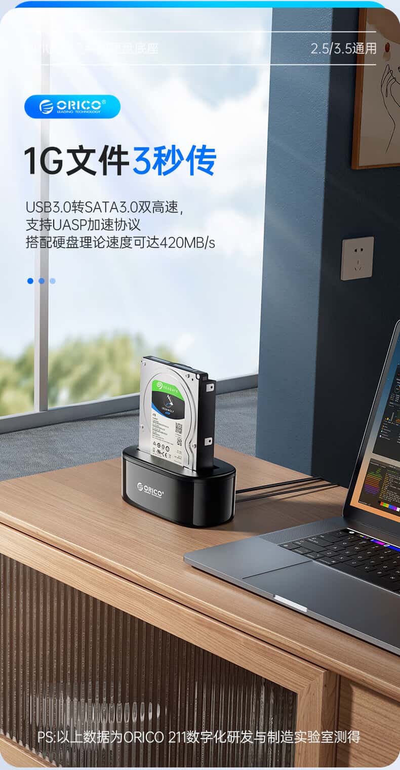 奥睿科(ORICO)硬盘盒底座3.5/2.5英寸SATA机械