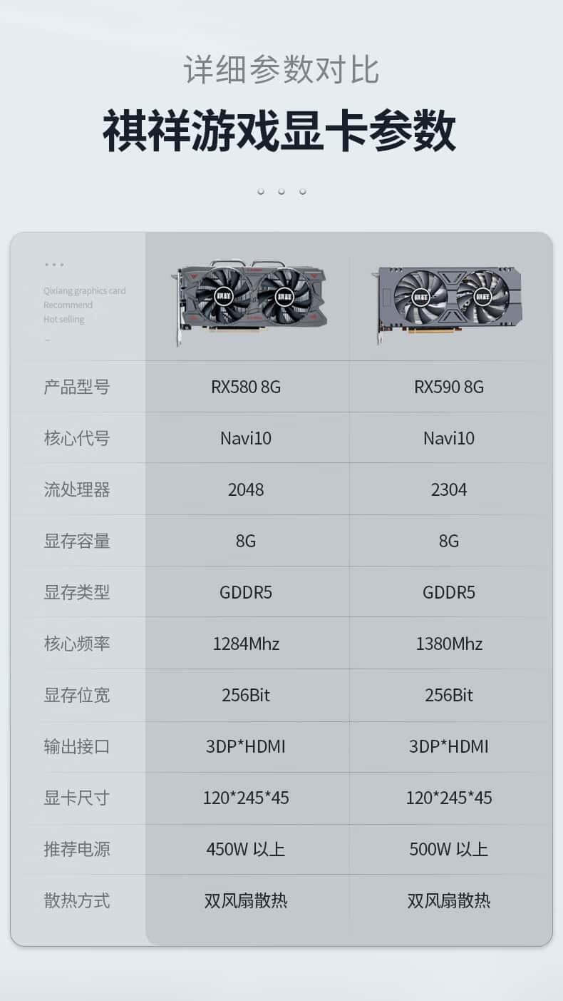 祺祥rx5808g2048SP/rx590台式机电脑独立显卡