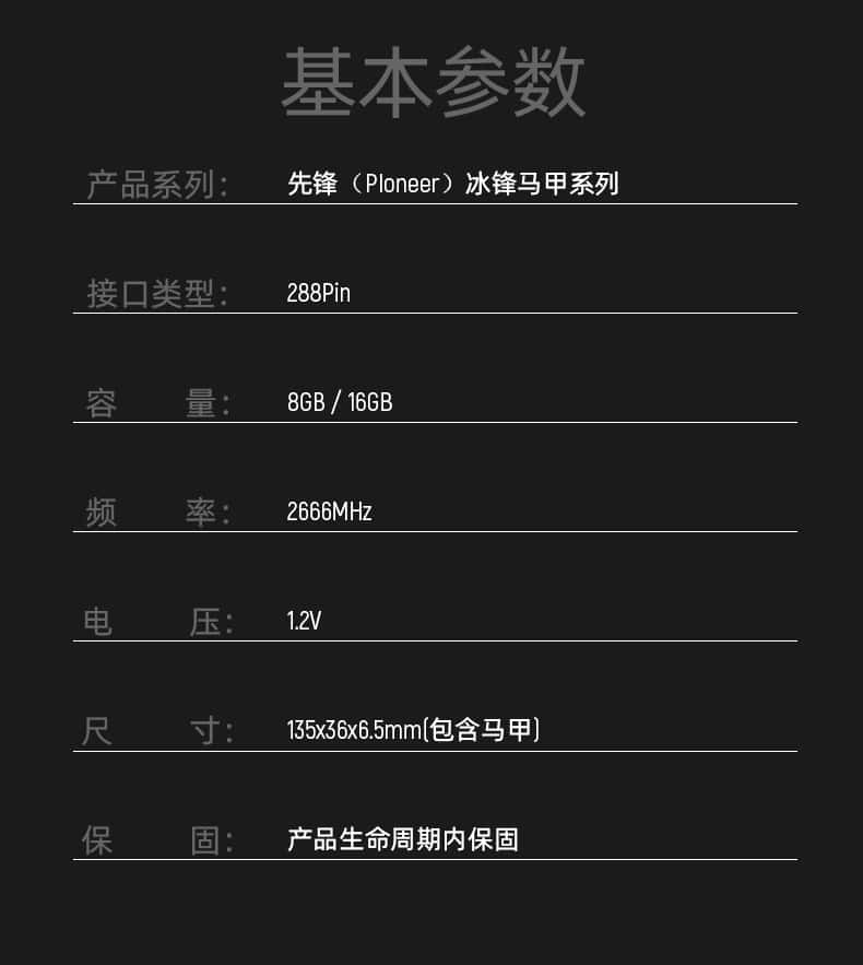 先锋(Pioneer)8GBDDR42666台式机内存条冰锋