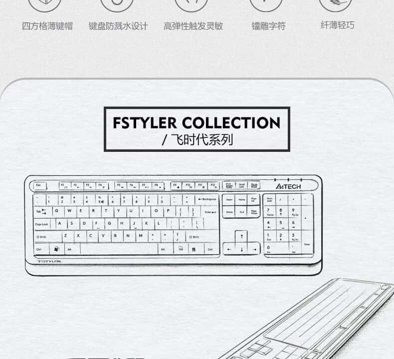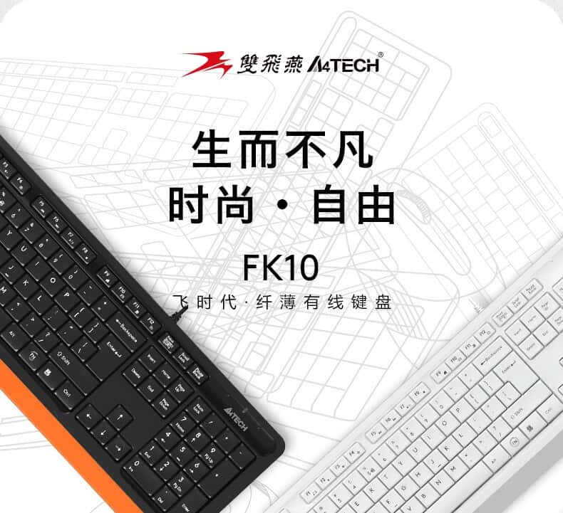 双飞燕(A4TECH)FK10飞时代有线键盘薄膜办公打字用键