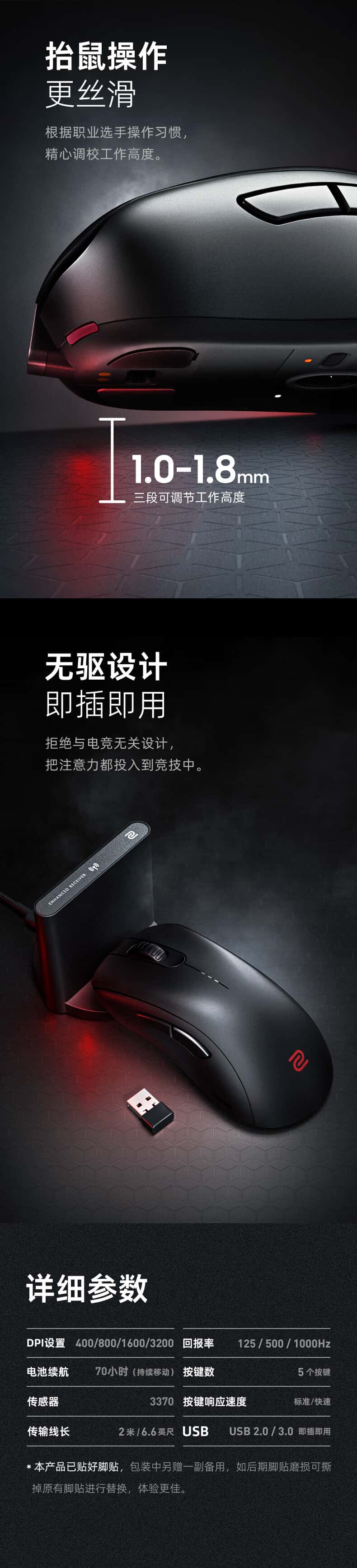 ZOWIE卓威无线鼠标游戏电竞人体工学设计多种大小可选