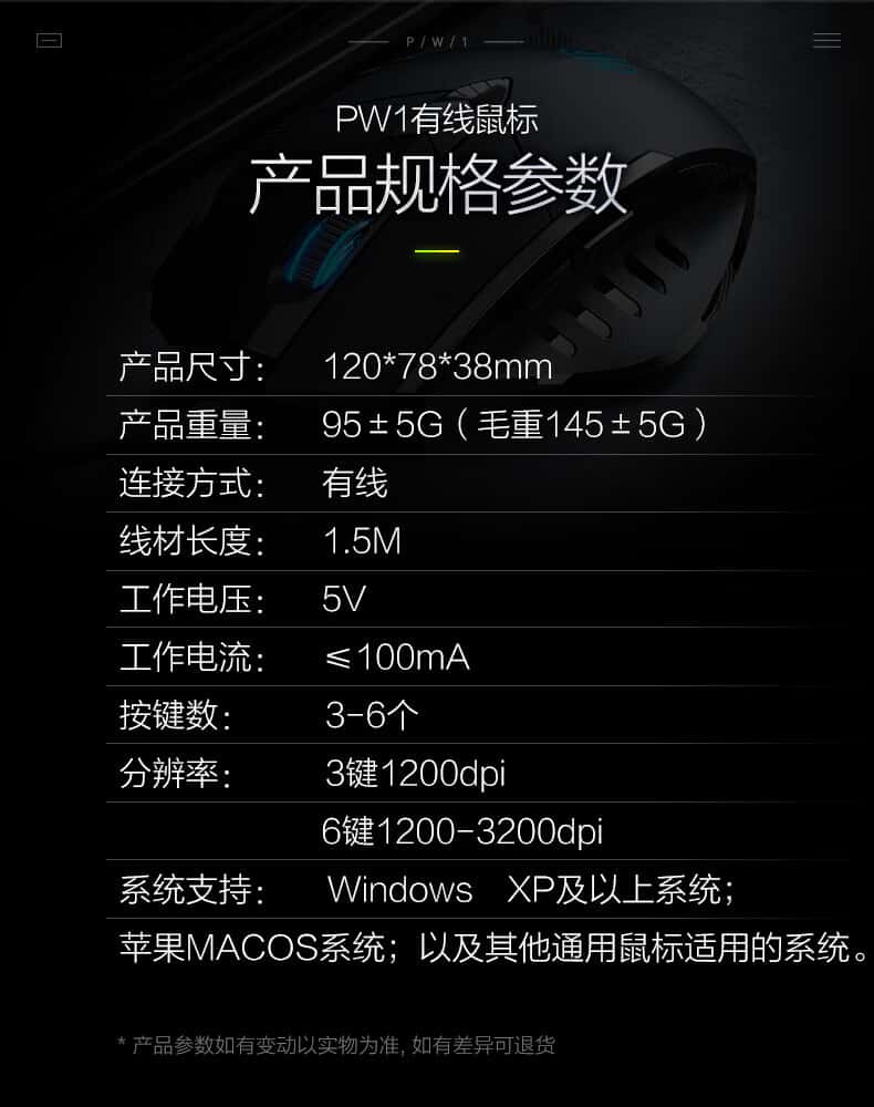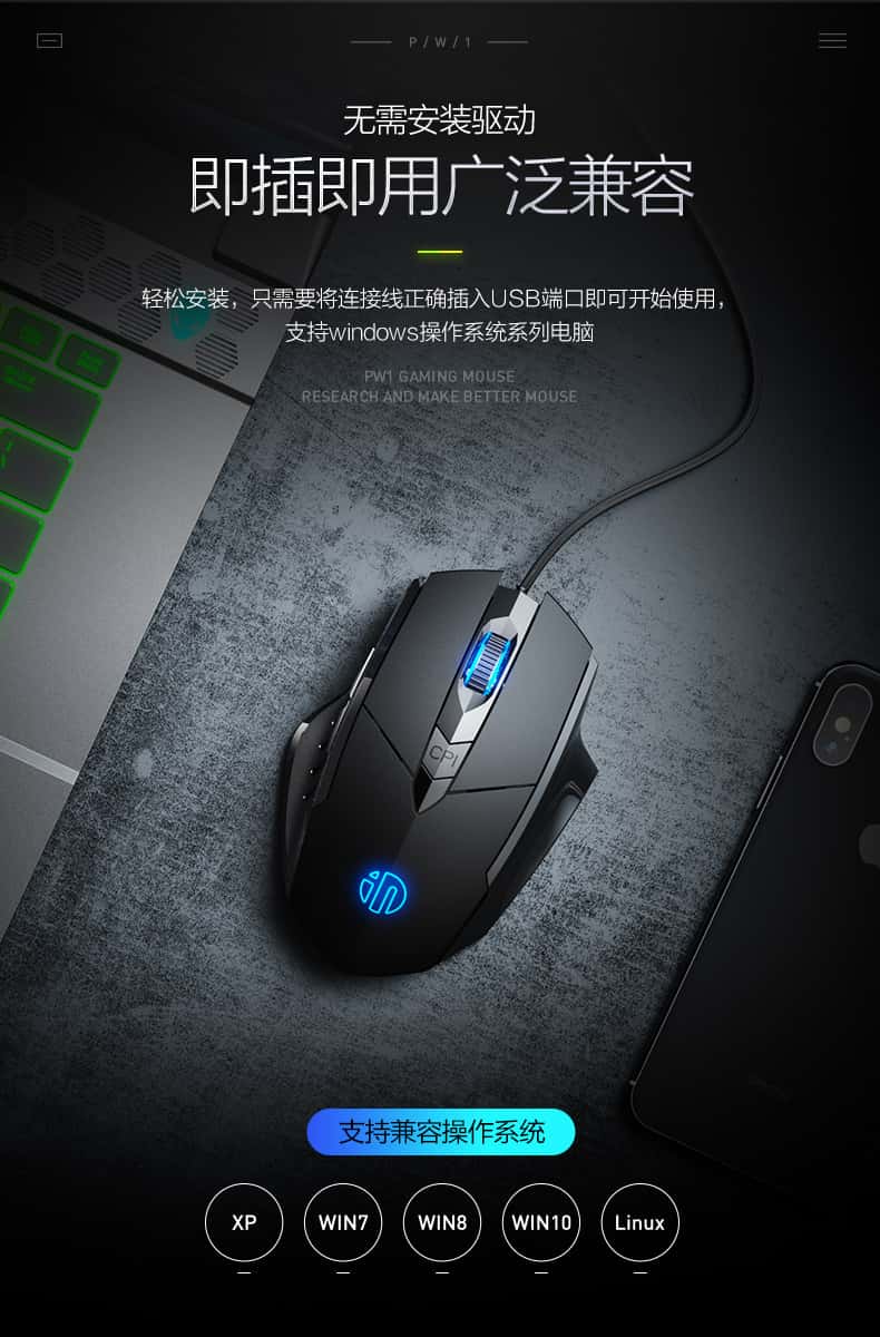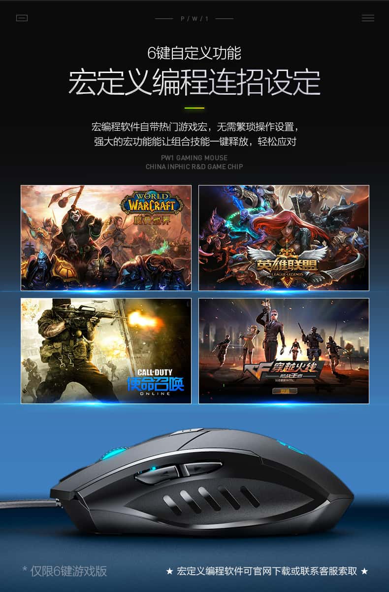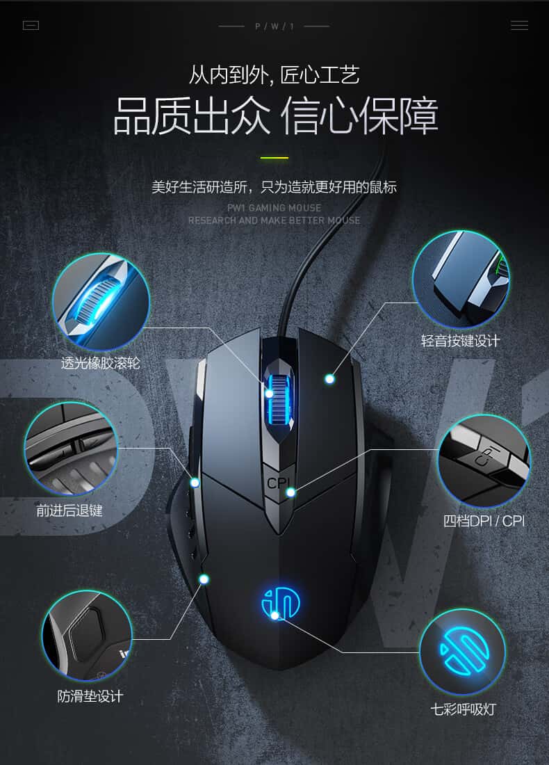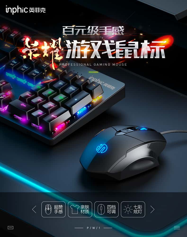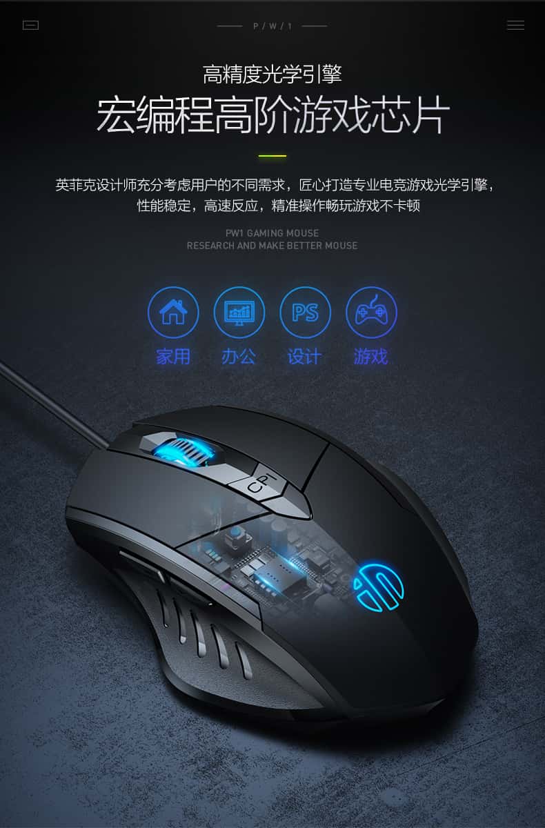 英菲克(INPHIC)W1有线游戏鼠标宏定义人体工学轻音家用