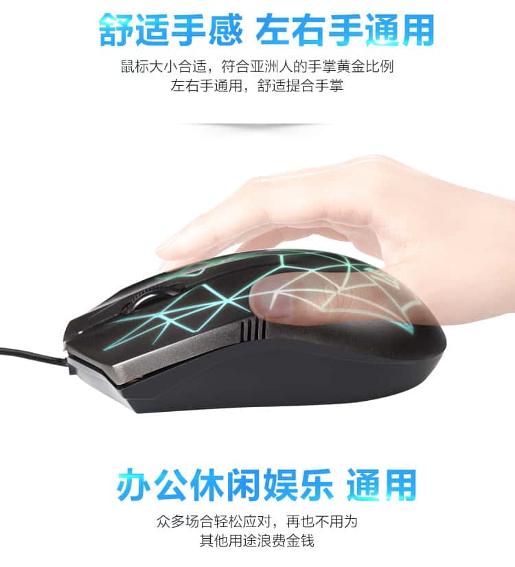 灵蛇(LINGSHE)有线鼠标发光鼠标人体工学鼠标M82黑色