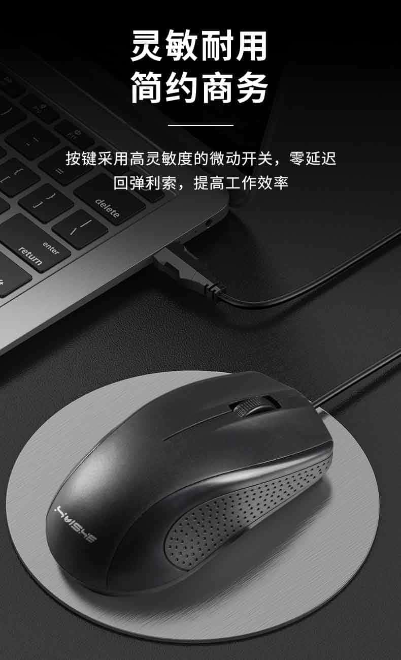 现代翼蛇&博士顿联名款M10有线鼠标办公鼠标人体工学USB通