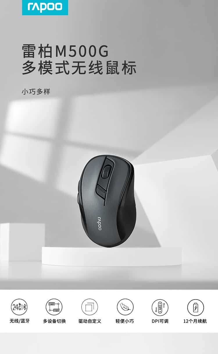 雷柏(Rapoo)M500G无线蓝牙多模鼠标办公便携轻音鼠标